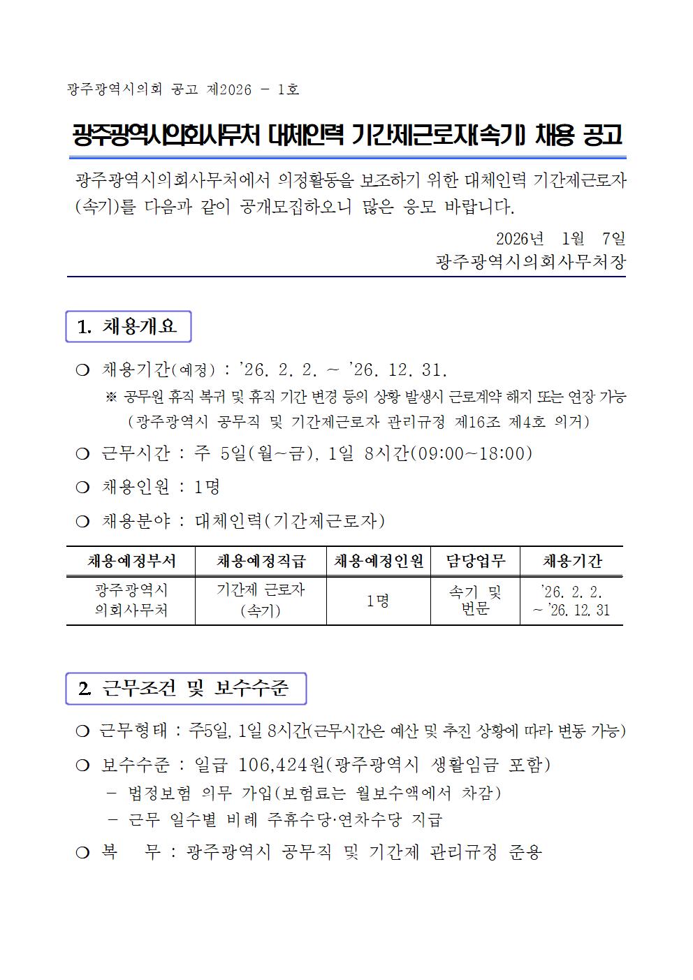 광주광역시의회 속기사 채용공고