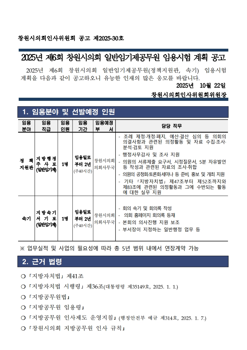창원시의회 속기사 공무원 채용공고