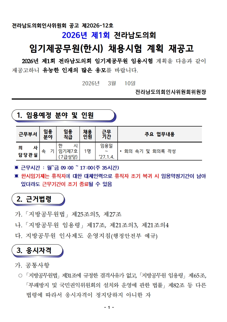 전라남도의회 속기사 채용공고